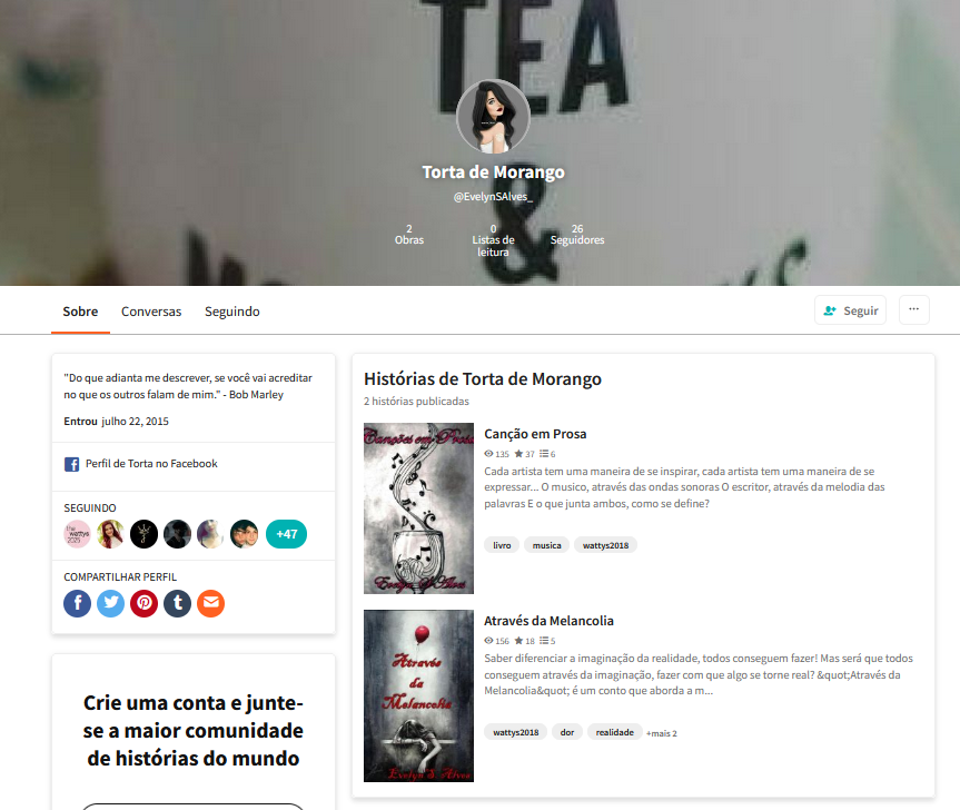Mas essa lembrança me leva também à minha conta do Wattpad. O que uma coisa tem a ver com a outra? Para qualquer um, absolutamente nada. Mas, para mim, é impossível não recordar da época em que eu escrevia e publicava minhas histórias por lá.